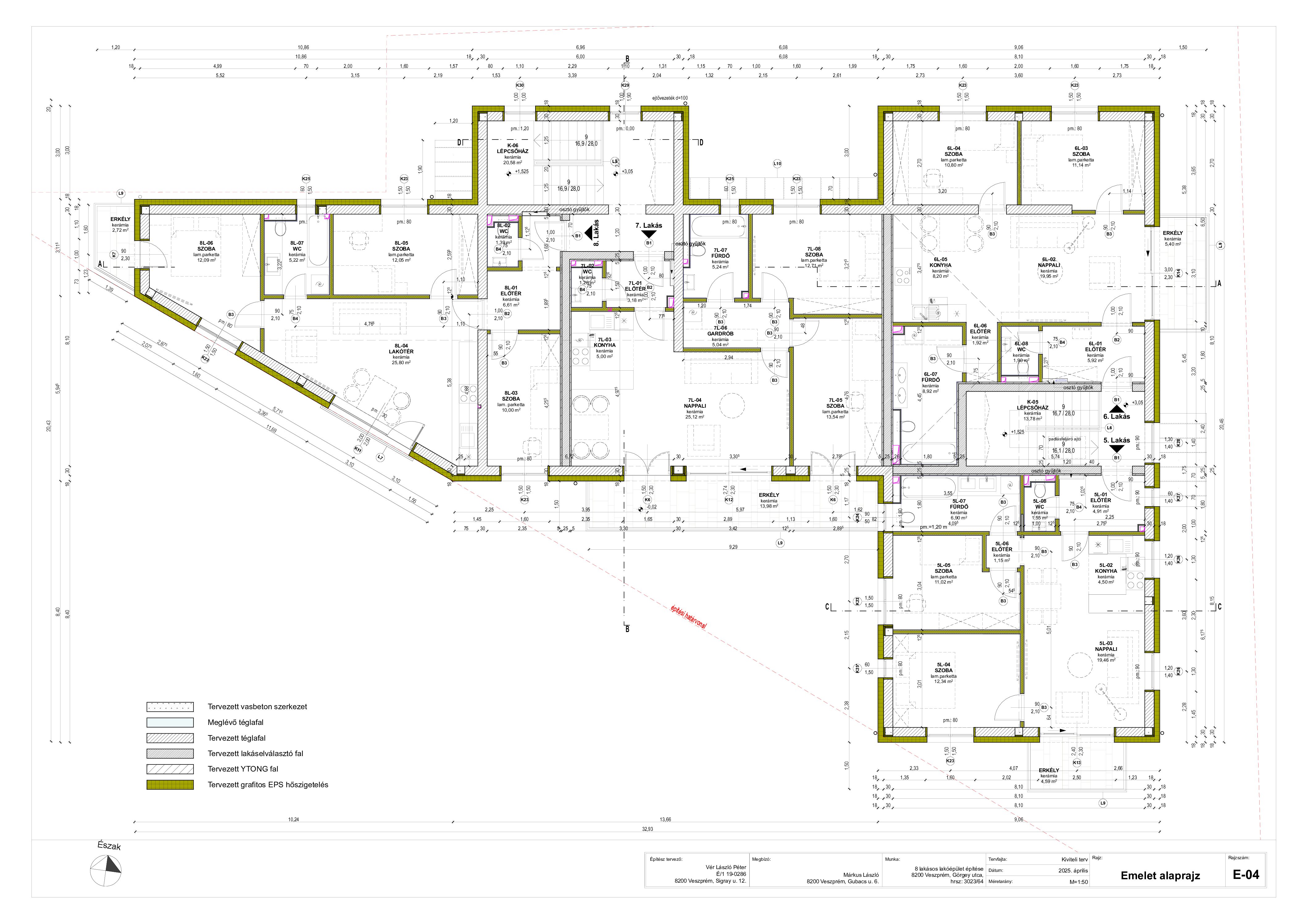 -Homlokzati falak: 30 cm vtg hőszigeteléssel kitöltött tégla falazat, 18 cm Austrotherm Grafit hőszigeteléssel