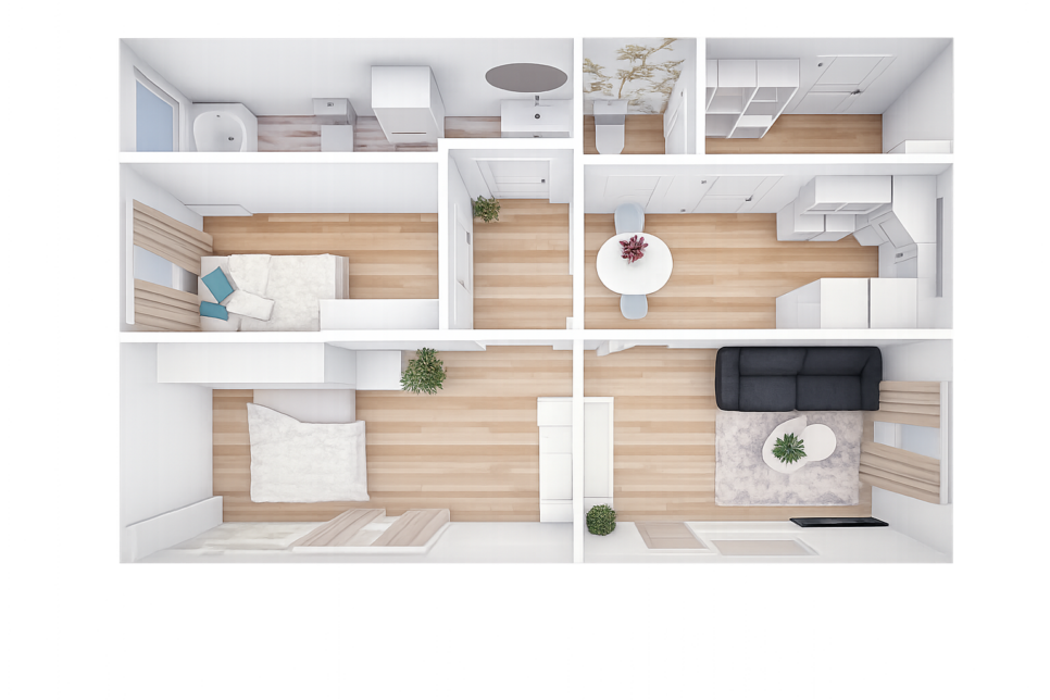 1-es lakás fölszint 61,20 nm + 15,85 nm /terasz/+tároló: 6,59 nm 106.650.000 Ft